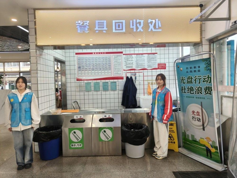 学生党员、入党积极分子在食堂开展节约粮食督导示范活动,监督浪费粮食的不文明行为,并带头示范,珍惜每一粒粮食,杜绝舌尖上的浪费,光盘行动,从我做起。