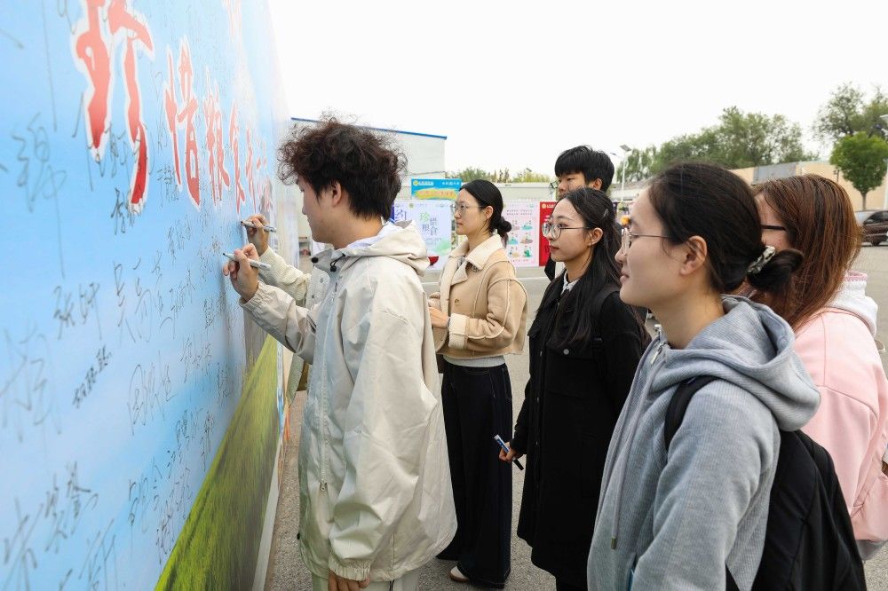 yabo鸭脖优秀师生代表向全校师生发起“思源奋进·珍惜粮食我示范”主题倡议,号召师生传承勤俭节约优良传统,筑牢粮食安全思想根基;弘扬爱粮惜粮节粮美德,践行粮食安全行动准则;营造爱粮惜粮节粮氛围,凝聚粮食安全共同力量。活动现场师生共同在“思源奋进·珍惜粮食我示范”主题展板上签名。