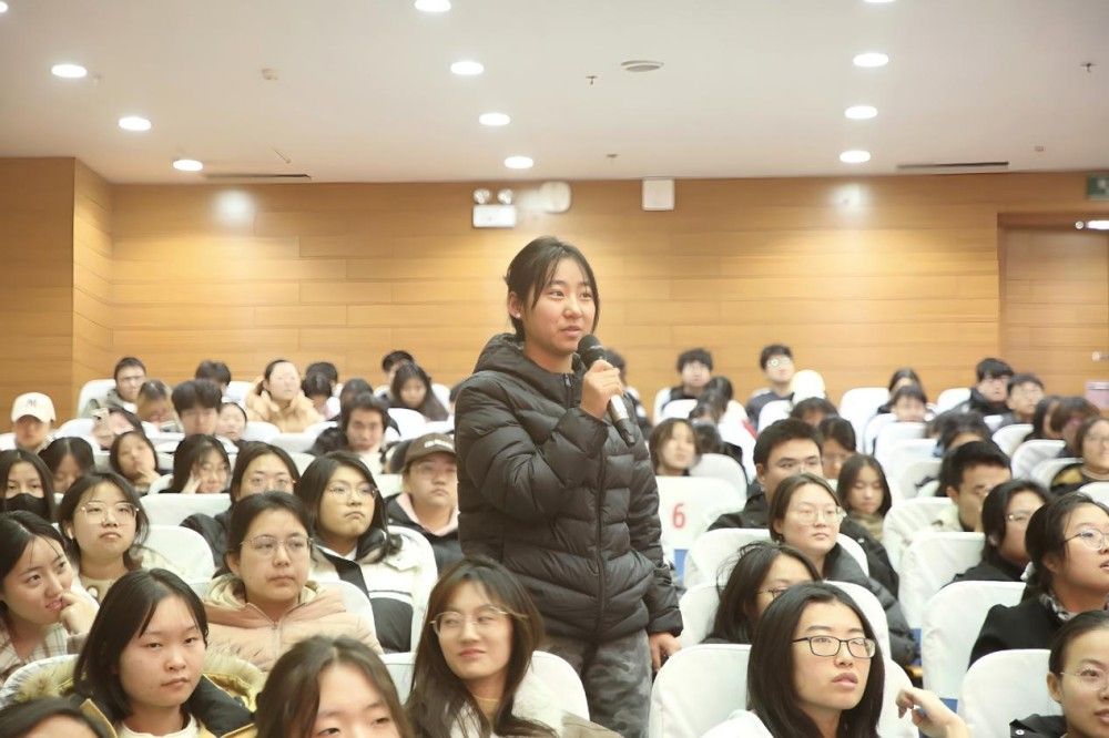 佟文展现出的运动员拼搏精神和奋斗力量让在场师生深受鼓舞,反响热烈。与冠军面对面,同学们争相提问,现场气氛热烈,佟文耐心回答同学们的问题,鼓励同学们要努力进取。互动环节实现了理论灌输与情感共鸣的深度融合,有效引导广大师生从榜样身上汲取力量。参加互动的同学纷纷表示,真正的奋斗,不是从不跌倒,而是即便落后,也要拼到最后一秒。无论在学业还是未来的挑战中,都要像佟文那样,以坚定的信念和全力以赴的行动,去冲破自己的“极限”,书写属于我们这一代人的奋斗篇章。