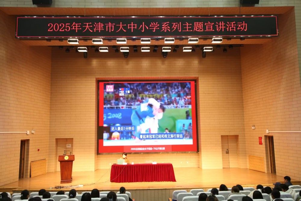 宣讲环节中,佟文老师通过分享自己的个人经历,充满激情、铿锵有力地讲述了在奋斗路上的喜悦与汗水的故事,为师生讲授了一堂生动的思政大课。佟文是中国柔道界首位全满贯运动员,运动生涯共获国内外比赛奖牌56枚,其中金牌48枚。被国际柔道联合会评选为1956—2014年世界柔道过胜率最高的女子柔道运动员。她以饱满的激情和富有感召力的语言,回顾了自己在专业领域不懈探索、勇攀高峰的历程。大量精彩生动的故事,特别是她在北京奥运会上“一本逆转夺金”的场景,让在场师生们深刻体会到运动员的拼搏精神和奋斗力量。
