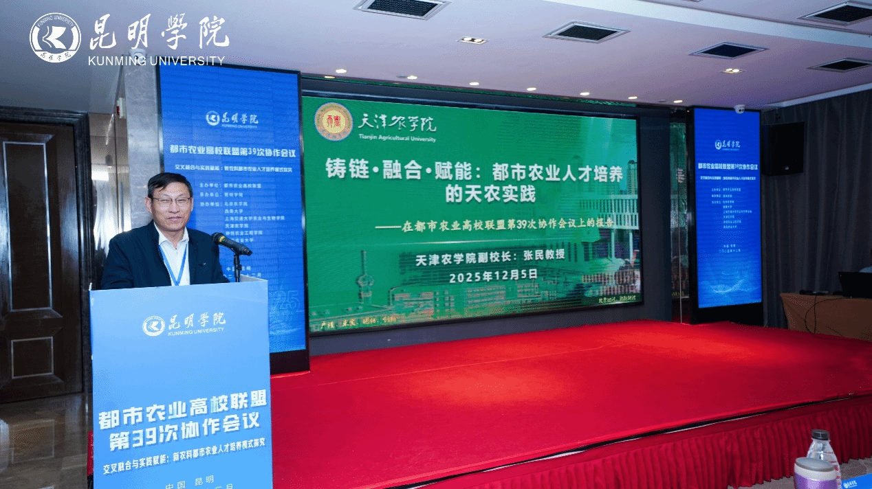 12月5日,都市农业高校联盟第39次协作会议在云南昆明召开。会议以“新农科都市农业人才培养模式探究”为主题,由昆明学院承办。校党委常委、副校长张民参会,与来自西南大学、北京农学院、仲恺农业工程学院、青岛农业大学、上海交通大学等高校的代表共商都市农业人才培养与校际协作。