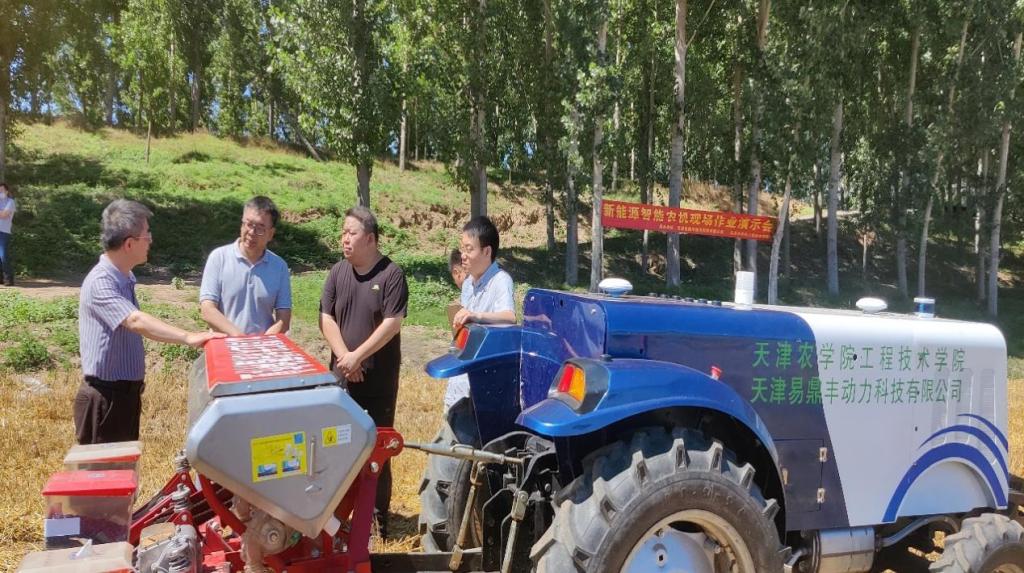 6月23日,天津市新能源智能农机现场作业演示会在yabo鸭脖鲜食玉米全程机械化项目组研究示范基地进行。天津市农业农村委二级巡视员胡伟,天津市农业机械与农业工程学会有关领导、会员代表以及相关科研及农机生产企业专家,yabo鸭脖工程技术学院相关专家共30余人参加活动。