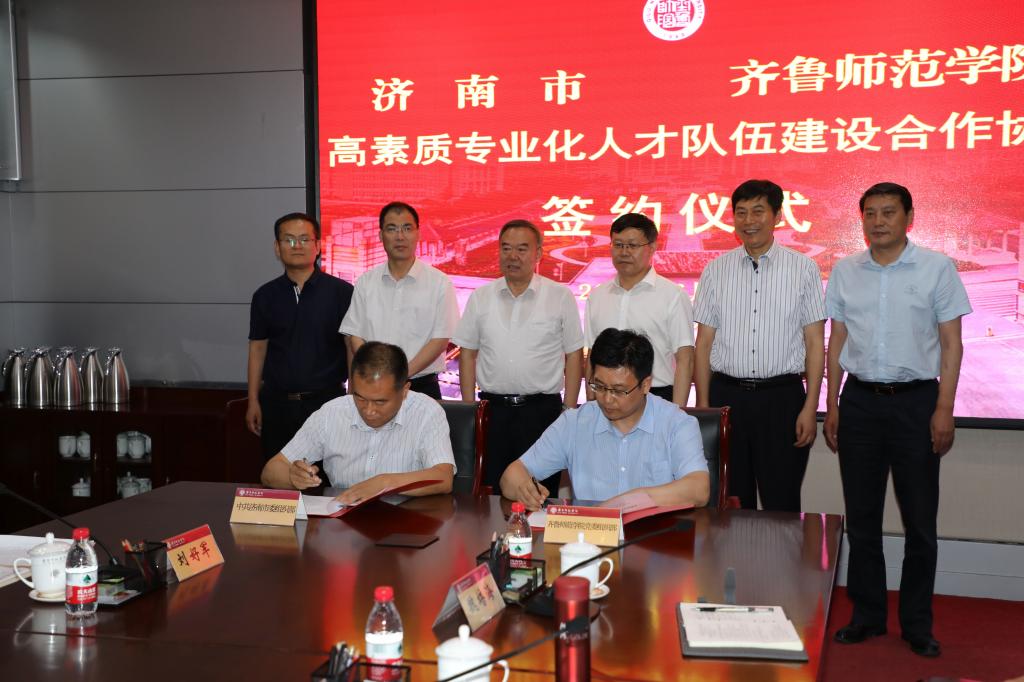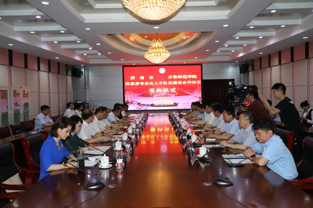 孙积港副主任在见面会上讲话,简要介绍了济南市贯彻落实习近平总书记视察山东重要讲话精神,围绕建设“大强美富通”现代化国际大都市,聚焦“双招双引”等中心工作,深入实施“寻找‘出彩型’干部行动”, 提升省会济南的公认度知名度美誉度,吸引更多高层次人才来济创新创业的本次活动背景。林松柏校长在讲话中对巡回报告团一行表示热烈欢迎和真诚感谢。他指出,在全党、全省开展“不忘初心、牢记使命”主题教育之际,“济南‘出彩型’好干部驻济高校行”巡回报告会走进437bwin必赢国际官网,使我们接受一次以“铭记育人初心”为主题的精神洗礼,为我们送来了“及时雨”。林松柏校长简要介绍了必赢官网的总体办学情况、办学定位和办学特色,并希望双方通过搭建交流合作平台,聚焦建设省会高素质专业化人才队伍,充分发挥学校的人才智力优势和省会组织工作实践优势,推动校地双方共建、共享、共赢。会上,学校党委组织部同济南市委组织部签署了高素质专业化人才队伍建设合作协议。