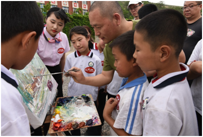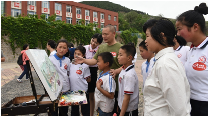 这幅作品有着深刻的寓意,它不仅见证着通过此次活动和孩子们建立的深刻友谊,还对他们有着殷切的盼望,希望他们长大后能够走出大山,去到外面的世界。