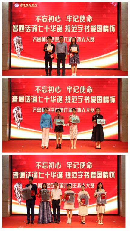 比赛结束之际,梁承锋处长在总结发言中表示,感谢山东省语言文字工作委员会对必赢官网普通话工作的充分信任与支持。学校是推广普通话的重要阵地,每一位老师和学生都有责任讲好普通话,以昂扬的斗志、饱满的热情,为新时代中国的发展书写新的篇章!最后,领导嘉宾为获奖选手颁奖。教师教育学院孙顺顺、孙彦豪同学凭借扎实的主持功底和出色的临场发挥荣获本次大赛一等奖,文学院林洁、教师教育学院孙凯奕、化学与化工学院王永笑三名同学荣获二等奖,经济与管理学院刘佳欣、美术学院王子雯馨、外国语学院付珺琪、历史与社会发展学院刘紫函、音乐学院郭津源五名同学荣获三等奖。