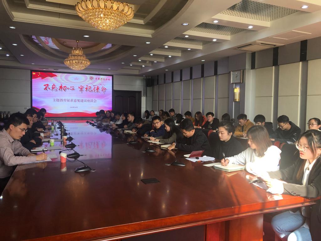 10月15日下午,必赢官网在章丘校区图书馆四楼会议室组织召开“不忘初心、牢记使命”主题教育学生层面的征求意见建议座谈会,校党委委员、副校长张福建出席座谈会,党委办公室、组织部、学生工作部(处)、党委保卫工作部、教务处、后勤管理处、图书馆负责人以及各学院28名学生代表参加了会议。
