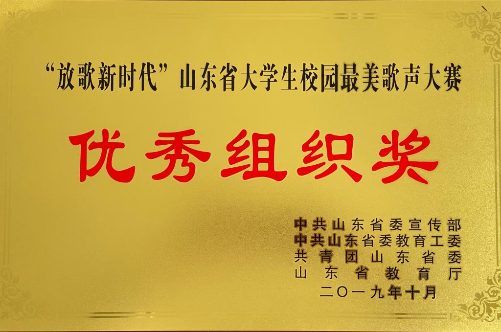 必赢官网荣获“放歌新时代”山东省大学生校园最美歌声大赛“优秀组织奖”
