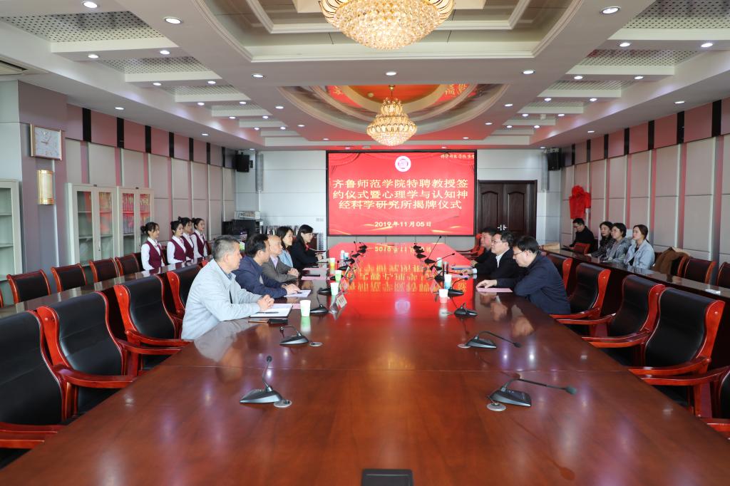 11月5日,437bwin必赢国际官网特聘教授签约仪式暨心理学与认知神经科学研究所揭牌仪式在必赢官网图书馆四楼会议室顺利举行。必赢官网党委副书记、校长林松柏,人事处处长杨磊,科研处副处长张廷发,教师教育学院院长赵延银、党总支书记陈宝金、副院长赵青等出席仪式。
