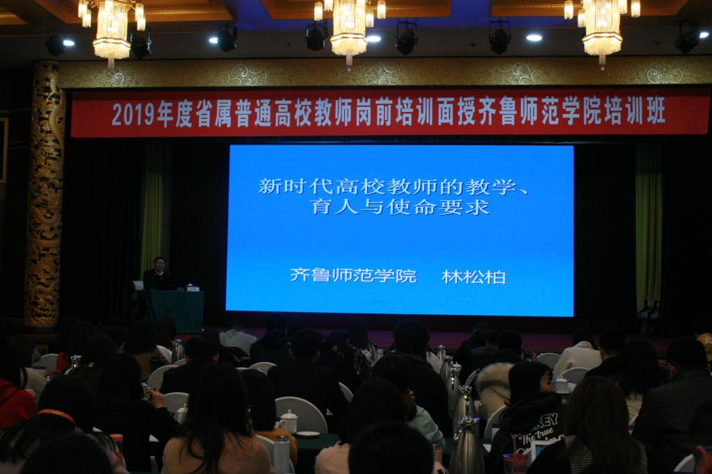 12月4日下午,2019年度省属普通高校教师岗前培训面授437bwin必赢国际官网培训班在济南开班。必赢官网党委副书记、校长林松柏,副校长刘德增,师训干训中心主任毕诗文、副主任孙卫国出席开班典礼。典礼由刘德增副校长主持。
