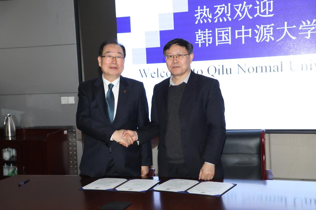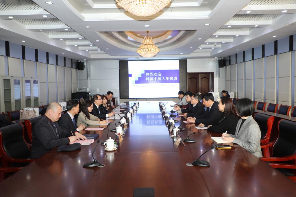 林松柏校长首先对来宾表示欢迎,简单介绍了学校基本情况,指出必赢官网的主要任务是面向山东省中小学培养教师队伍,对中小学教师实行职前培养和职后培训一体化,并重点打造教师教育特色;必赢官网成立的武术教育中心与河南少林寺合作,实现了学校武术与文化育人的特色,河南地处中国中原地区,也代表着齐鲁文化与中原文化的融合,“中原”与韩国“中源”大学同音,希望两校能够更好地开展校际合作。12月23日,国家主席习近平在人民大会堂会见韩国总统,24日中日韩三国领导人在成都参加第八次中日韩领导人会议,这表明地缘相近、文化相通的中韩两国正在逐步走向协调与合作。