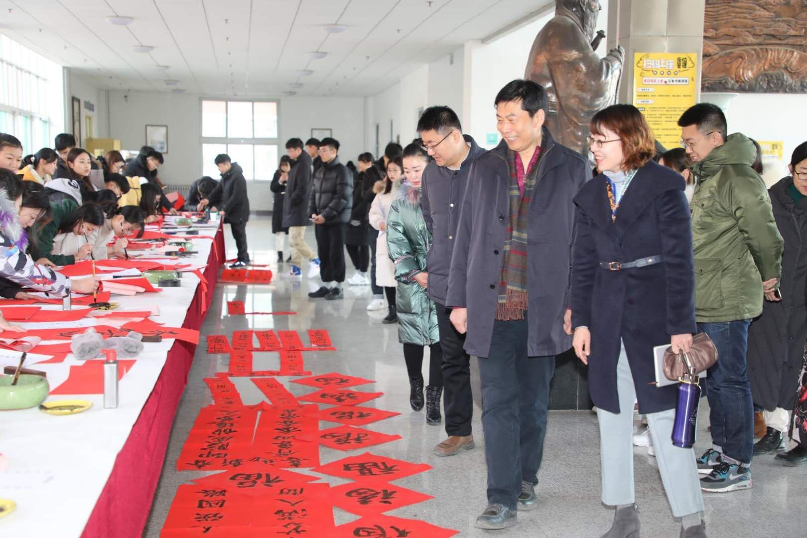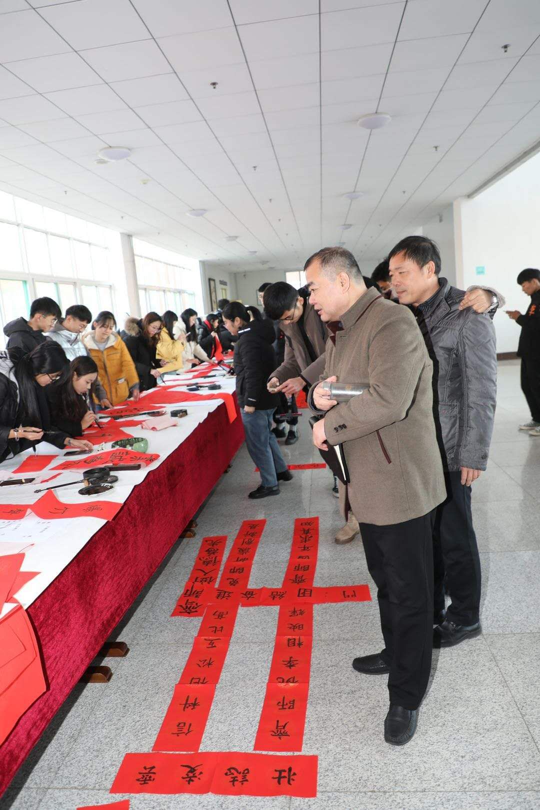 学校副校长张福建也来到活动现场。他和各学院党总支书记还有前来参加活动的师生们在书写桌前一一驻足观看,对学生的书法大加赞赏。张福建副校长对这次活动给予了充分肯定,他指出:“一定要将这种具有中国特色、中国气派、学校风格、学生素养的活动开展下去,传承发扬中华优秀传统文化,推动必赢官网精神文明建设不断向前发展”,同时借此活动向全校师生送出新年的美好祝福。