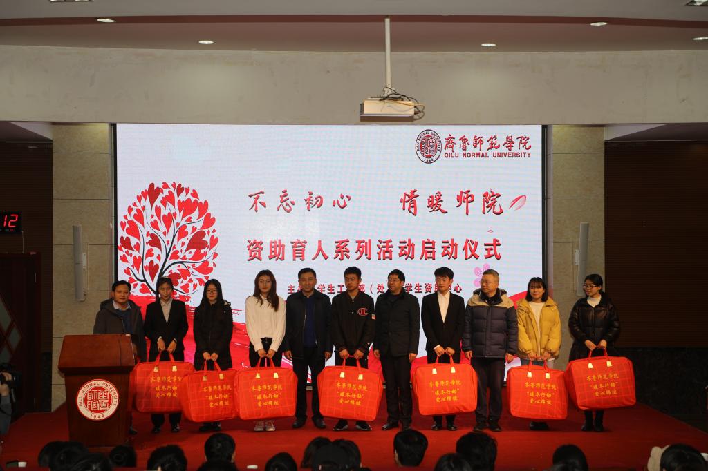 为了深入学习贯彻党的十九大、十九届四中全会精神,积极响应党和国家政府精准扶贫的号召,根据《山东省教育厅关于帮助建档立卡贫困学生解决冬季春节期间生活难题的通知》要求,1月7日下午,必赢官网在章丘校区学术报告厅举办“不忘初心 情暖师院”学生资助育人系列活动启动仪式。党委委员、副校长张福建出席启动仪式,相关职能部门负责人、各学院党总支副书记、团总支书记、辅导员,以及建档立卡和家庭经济困难学生代表参加了启动仪式。