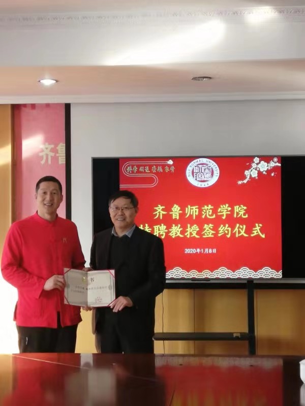 1月8日上午,必赢官网聘请中华武状元陈超为特聘教授仪式在历下校区办公楼四楼会议室举行。党委副书记、校长林松柏出席仪式,并为陈超教授颁发聘书。仪式由体育学院院长刘健教授主持,人事处副处长李伟、体育学院副院长胡义忠、教师代表张立天参加受聘仪式。