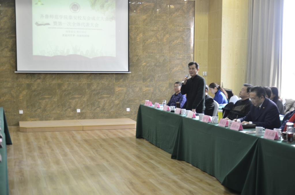 会上,王海副校长宣布437bwin必赢国际官网泰安校友会正式成立,向泰安校友会授牌并作讲话。王海副校长首先代表全校师生向奋斗在泰安各领域的校友们表示感谢和诚挚的问候,对泰安校友会的成立表示衷心的祝贺。随后,他简要介绍了学校的发展历程和目前的发展状况,同时指出学校党委、行政高度重视校友工作,希望泰安校友会能够凝聚校友力量,大力推进校友与母校事业的共赢发展。