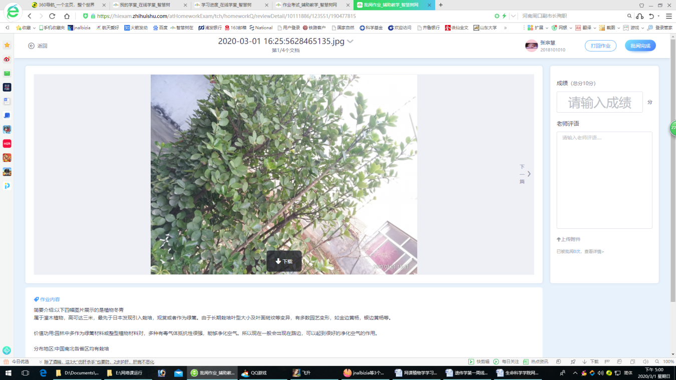 生命科学学院植物学学生作业