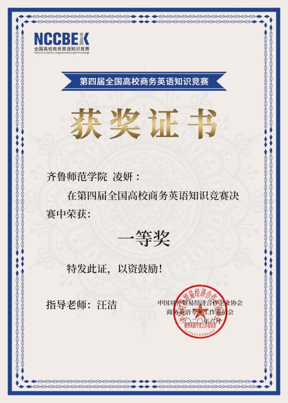 必赢官网学生代表队共89名选手参赛,通过指导教师的悉心指导和学生的认真备赛,19级商务英语(本科)1班凌妍获得全国决赛一等奖,18级商务英语(专科)1班侯璐璐、19级商务英语(本科)1班赵静、19级商务英语(专科)3班杨家毅、18级商务英语(专科)1班耿梦娜获得全国决赛二等奖。外国语学院孙建华老师、汪洁老师获得竞赛优秀指导教师奖。