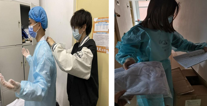 每天,在其他同学还没有起床的时候志愿者们就来到隔离宿舍门外,“同学,今天想吃什么呀?”,“把空热水瓶放在门口就行,我买完饭就给你们打水” ,“记得开窗消毒啊”……这一句句贴心地询问,无私的付出,换来的不仅是隔离宿舍中同学的一声声感谢,更是学院上下团结防疫抗的决心。一扇门能隔开面对面的拥抱,却隔不开心与心温暖的传递。