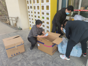 3月12日,学校校园启动封闭管理当天,学院还收到了一份特殊捐赠——21级文秘速录班孙婷婷的家长专门差人送来一批包括口罩、84消毒液和酒精在内的价值五千余元的防疫物资。这批物资到位后,立即应用于学生志愿服务,解了学院的燃眉之急。