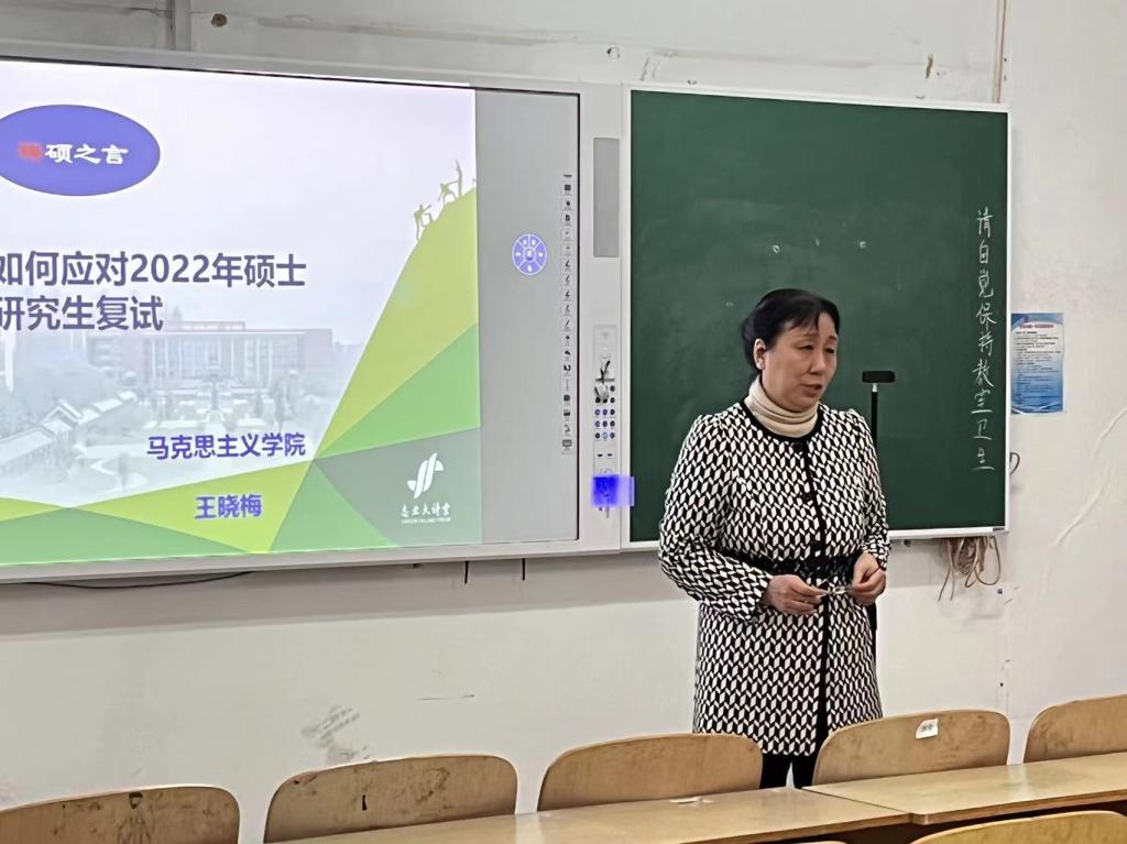 教师教育学院时刻都在关注着考研学子,提供全方位的保障,为其保驾护航,3月末,学院请王晓梅教授做了《如何应对2022年硕士研究生复试》线上线下相结合的专题报告,报告从复试流程、调剂院校、注意事项等几个方面为考研学子提供帮助与指导。